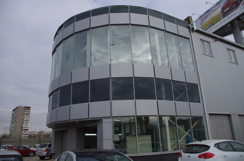 Реутов, 2-3 км МКАД, автосалон КИА Фаворит Моторс, витражное остекление 180 м кв.